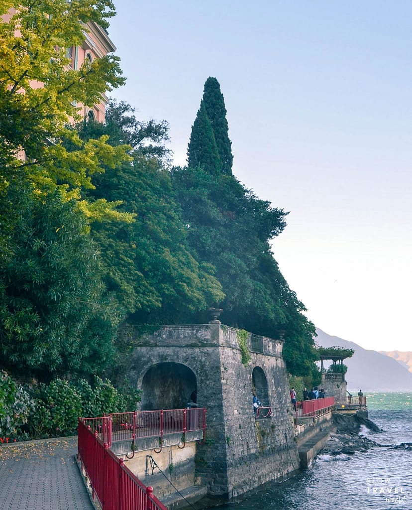 Depois voltamos pra próximo de onde saem e chegam as embarcações e fomos beirando o lago em um parque. Ali nesse parque tem um jardim, chamado Giardini di Villa Melzi. Iamos entrar, mas quando vimos que era uma vila privada e entrada custava EUR 6,50 por pessoa, acabamos desistindo. Fomos seguindo até chegar a San Giovanni, um bairro de Bellagio. Ah, que lugarzinho fofo… em um deck junto ao terminal das embarcações ficamos admirando a paisagem.