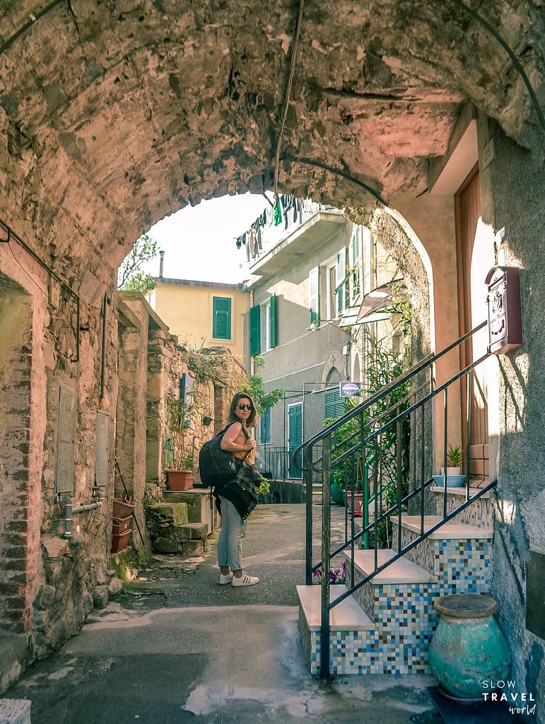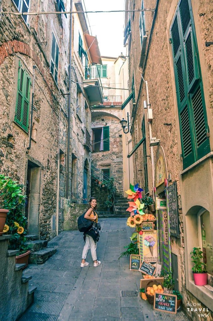 Saindo da estação de trem, a sua esquerda, você verá um caminho beirando o mar que te leva até um túnel para atravessar e então chegar ao centrinho histórico da vila. Um caminho lindo de viver, com alguns banquinhos pelo meio do caminho, perfeito para tomar um gelato e apreciar o visual.