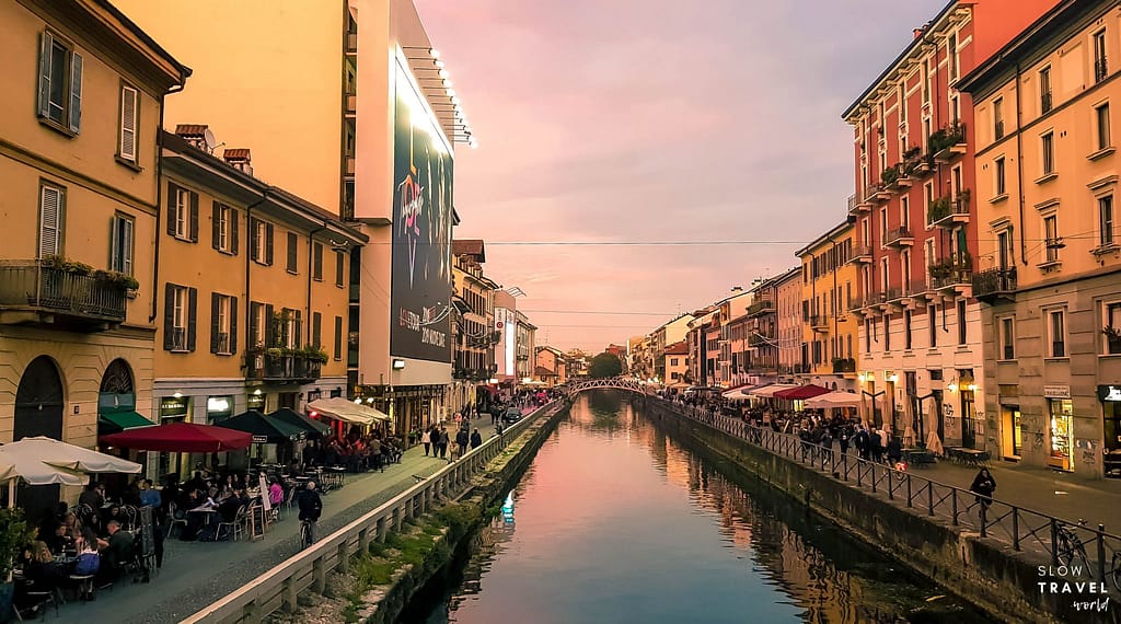 Navigli foi o bairro que optamos por nos hospedar. Sempre escolhemos bairros que a noite tem vida, com bares e restaurantes e por isso ficamos entre Navigli e Brera, e pelo preço, optamos por Navigli.