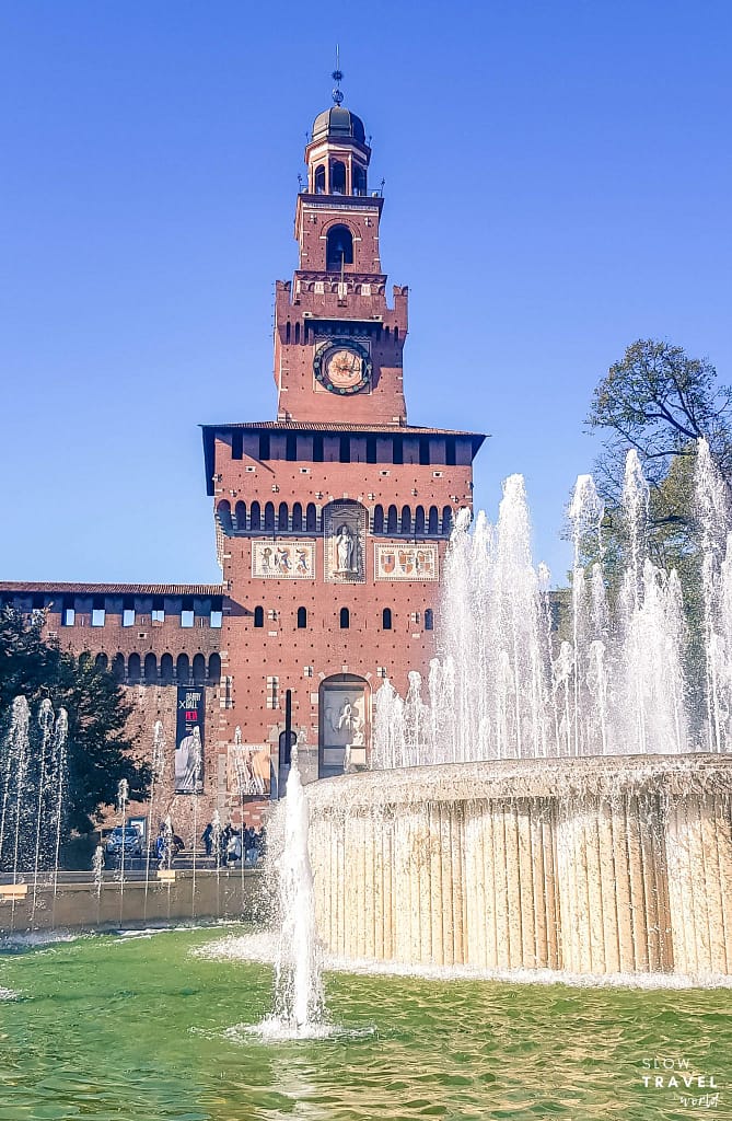 Saindo da praça e seguindo pela Via Orefici, que se torna Via Cordusi e logo em seguida a Via Dante, você chegará em cerca de 5 a 10 minutos de caminhada no Castello Sforzesco. O castelo foi construído no século XV por Fernando Sforzesco, e atualmente abriga coleções de artes em seus museus e galerias. O jardim do castelo tem passagem livre e é lindo! O ingresso para entrar no castelo custa EUR 10,00 e você pode verificar as opções aqui.